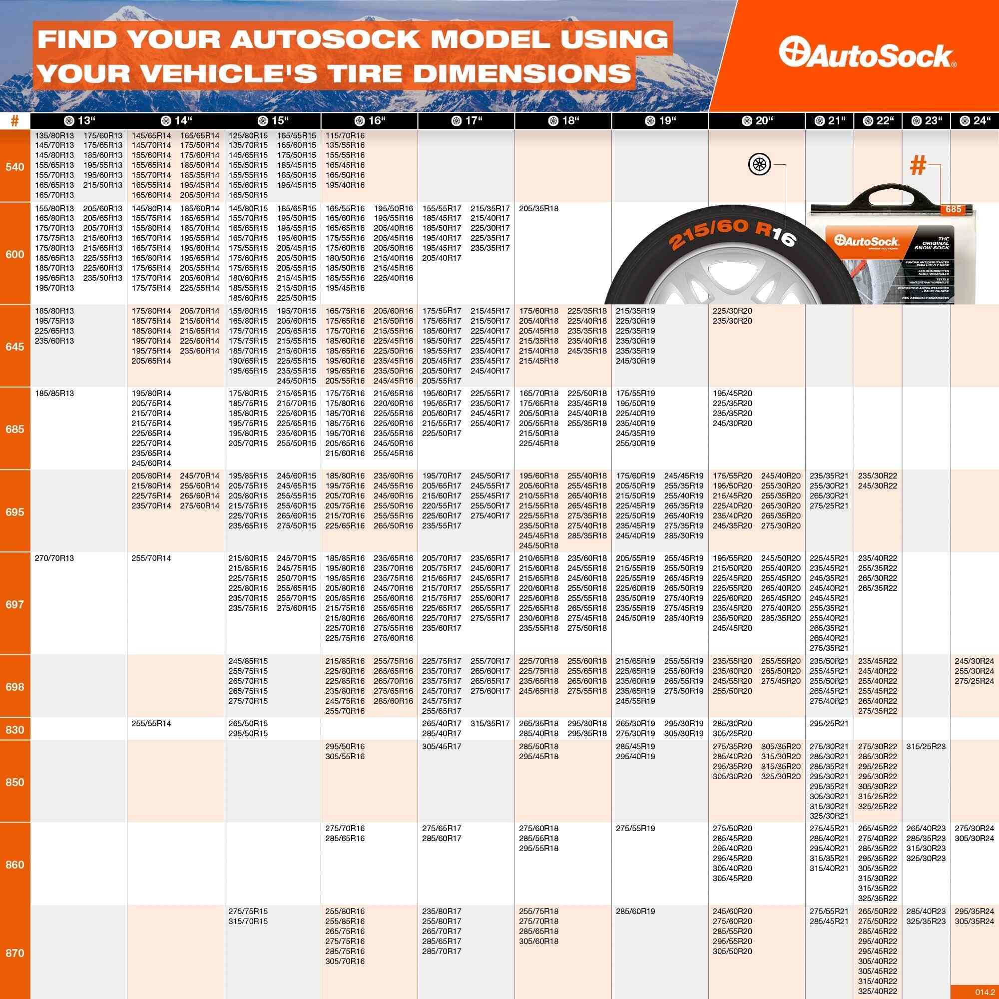 TYRE SIZE CHART - COMPATIBILITY TABLE FOR CAR SOCKS