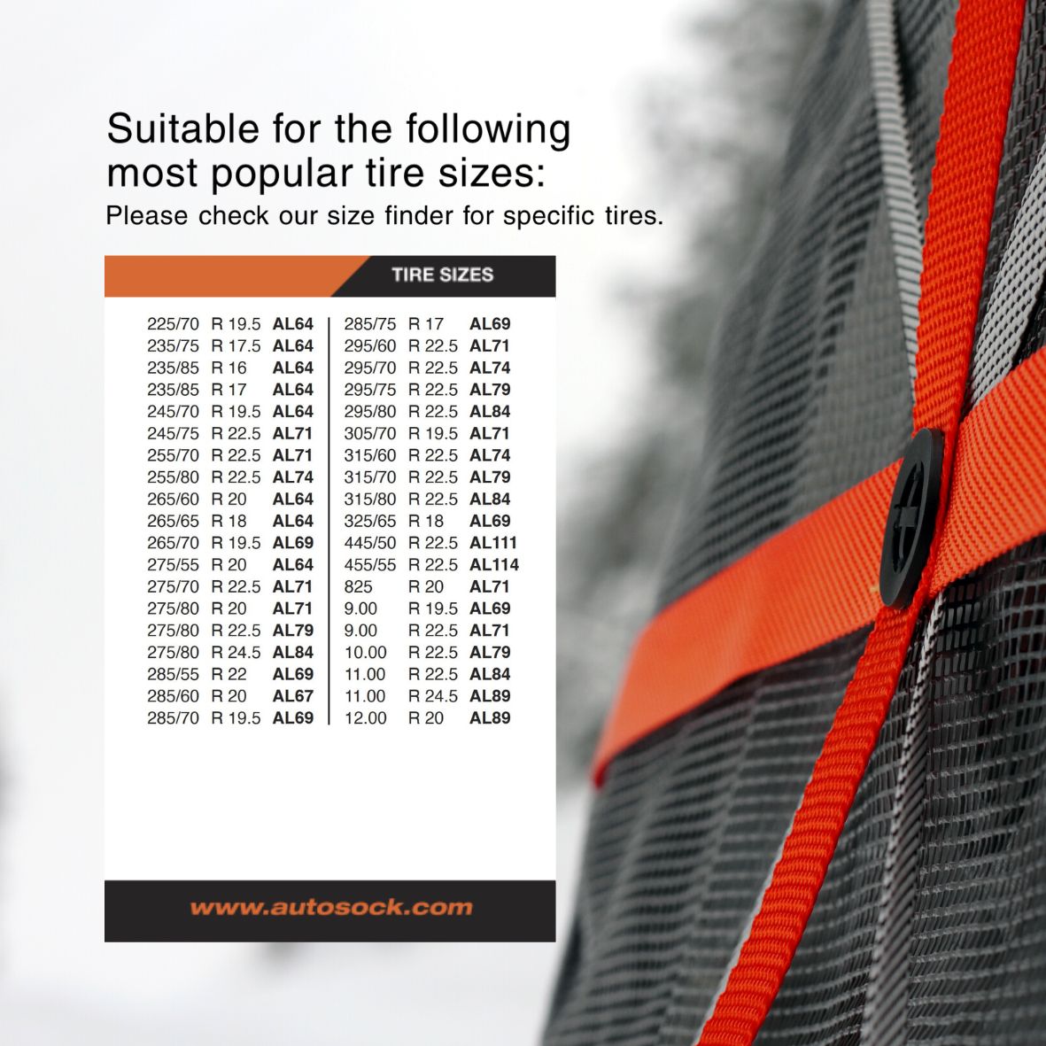 AutoSock for trucks helps you safe time and money when driving under severe winter conditions. Our snow socks are mounted in only a few minutes and keep your fleet moving. AutoSock for trucks is legally accepted as alternative to metal chains throughout the United States, and accepted alternative to snow chains in New Zealand.