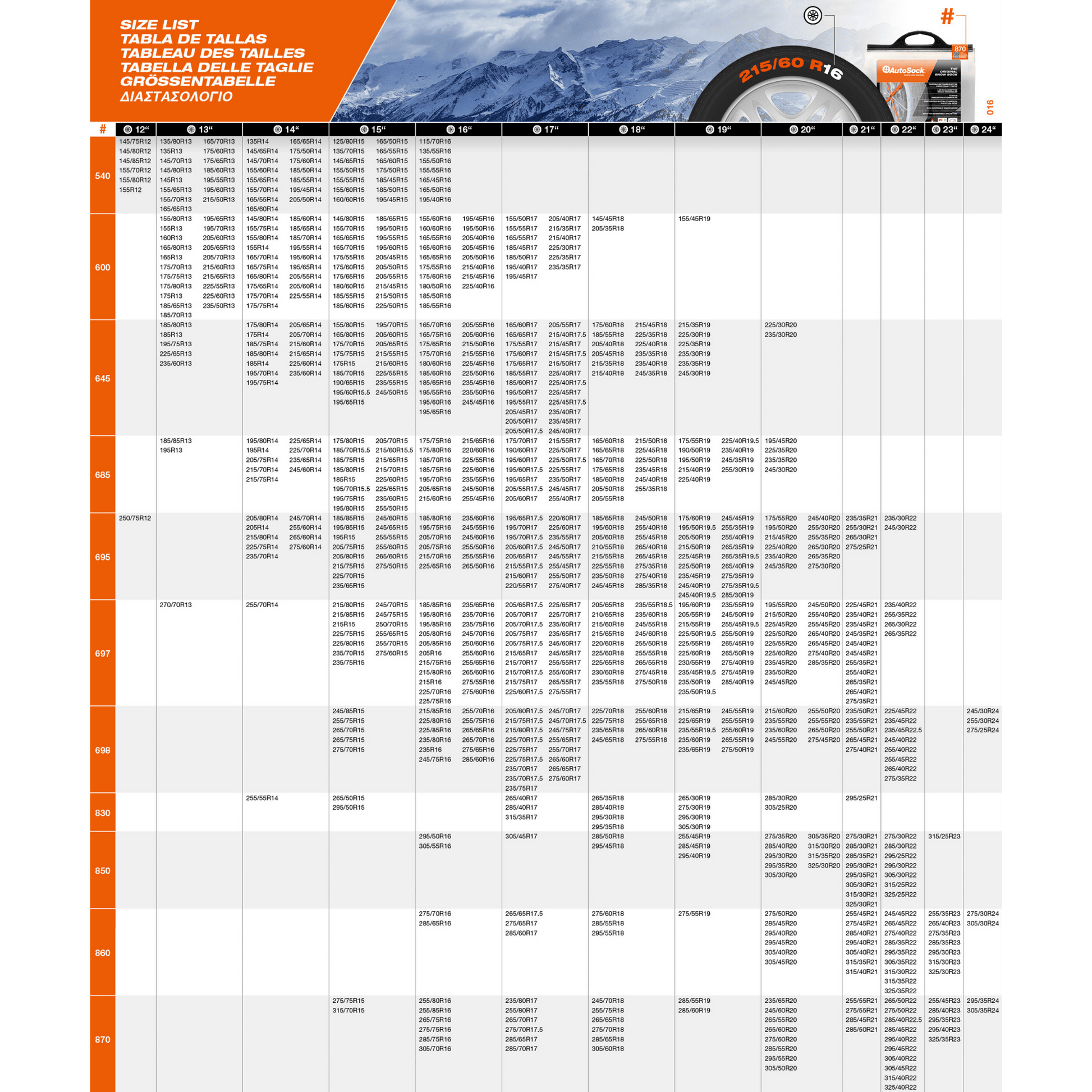 • Accepted when snow chains must be used in the Alps (France, Germany, Italy, Switzerland, except Austria).
